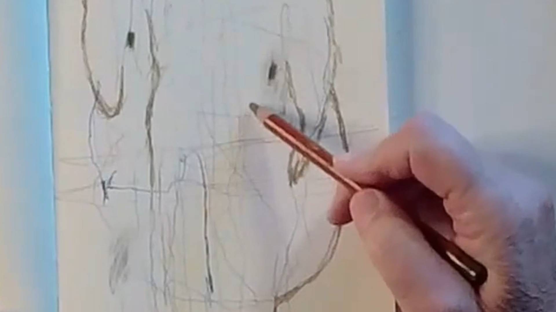 Lazy Lines Drawing by Carla Sonheim - Hold a lead pencil awkwardly, and without lifting the pencil off the page, allow yourself to draw randomly on the paper. Allow the pencil to travel across the page wherever it wants to go - up and down, side to side, straight or jagged, round or angular. Once you've got a good coverage on your page you can use an eraser to distress the marks, smudge the lead with your finger or change to coloured pencils if you want. There are no rules. Once you've created a type of framework see if you can find a shape or image in the lines. You might see something stand out, like a face or the form of an animal. Use the pencil lines to guide which features you want to bring out. Once your drawing is taking form you can purposefully add lines or shapes to bring your drawing to life.